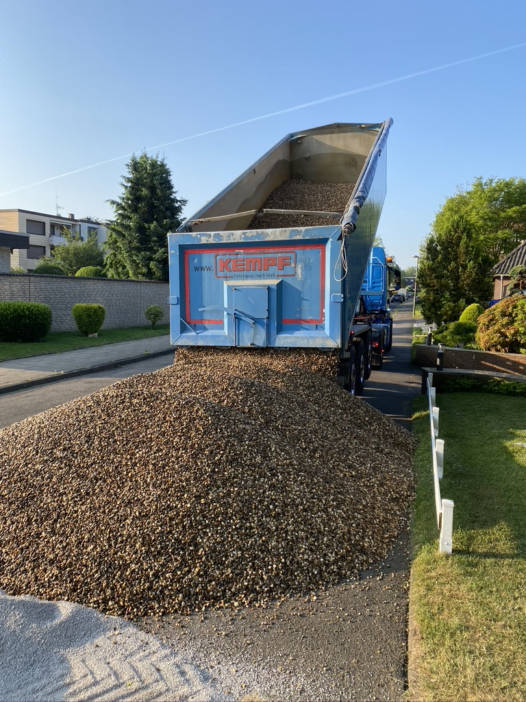 Und ich rede hier von 26 Tonnen (!!!) Kies 8-16mm und 15 Tonnen Split 2-5mm