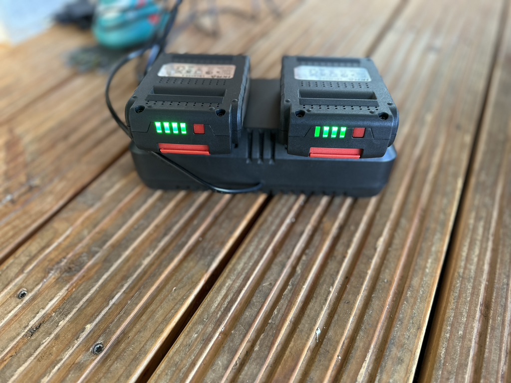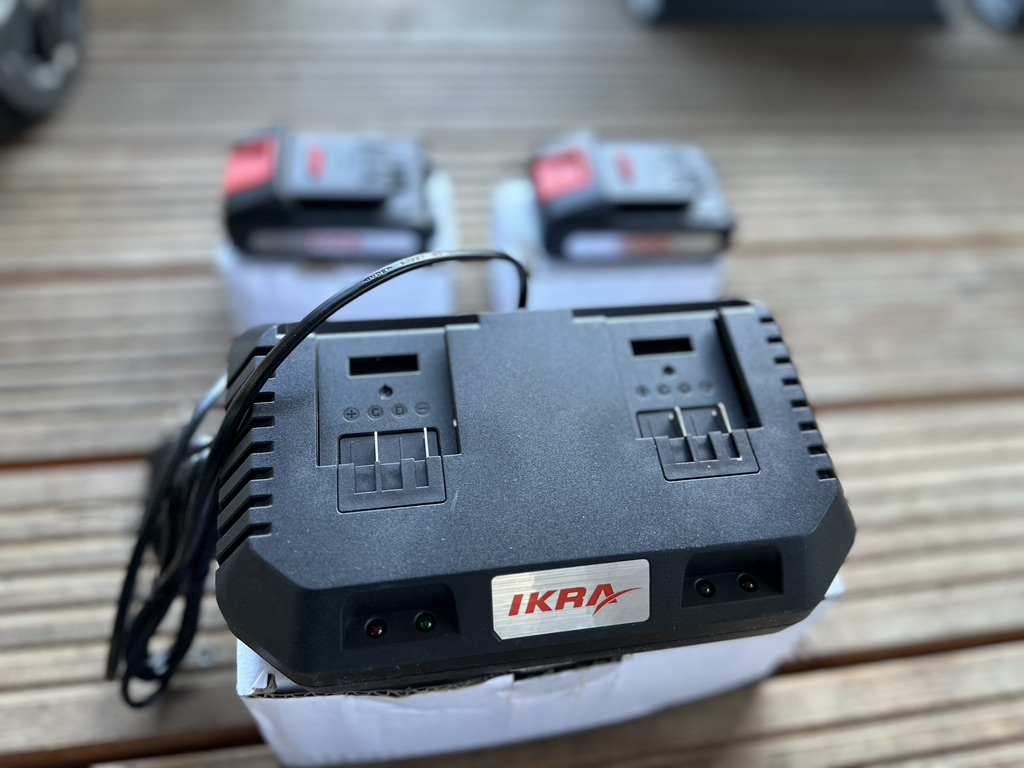Mit dem Akku-Rasenmäher der Firma Ikra IKRA ICM 2/2037 (Preis. ca. 189 €) kann ich meine Rasen-Fläche von bis zu 250 m² gut bearbeiten. Der 40-Liter-Fangsack ist dafür absolut gut geeignet. Dazu ist der Fangsack sehr unkompliziert zu leeren und ich kann sogar gut an der integrierten Anzeige erkennen, wann er wie voll er ist. Was mich besonders bzw. meine Frau (sie mäht ganz oft den Rasen) beeindruckt hat: das echte Fliegengewicht von nur ca. 13 kg. Damit steuere ich den Rasenmäher ganz bequem, auch ohne Antrieb. Den Führungsholm kann man wunderbar an die jeweilige Größe anpassen und zum Verstauen einklappen. Mit einer Vollladung der beiden Akkus kann ich bis zu 40 Minuten mähen (ich habe es jetzt bereits mehrmals getestet). Das Doppel-Schnelladegerät wird kostenlos mitgeliefert und kann ebenso wie die Akkus, für andere Systemgeräte von Ikra, verwendet werden.