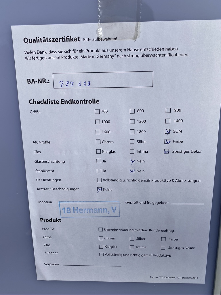 Qualität= Keine No-Name Materialien. Keine No-Name Zulieferer. Alle Schrauben und das Zubehör werden vorab geprüft, ob auch die Qualität stimmt. Dazu regelmäßige Vor-Ort-Checks (so wie bei mir durch Thomas, dem Gebietsverkaufleiter von Breuer) um die Bedienungsanleitung, Verpackung u.ä. auf praxistauglich und Serviceversprechen zu überprüfen.