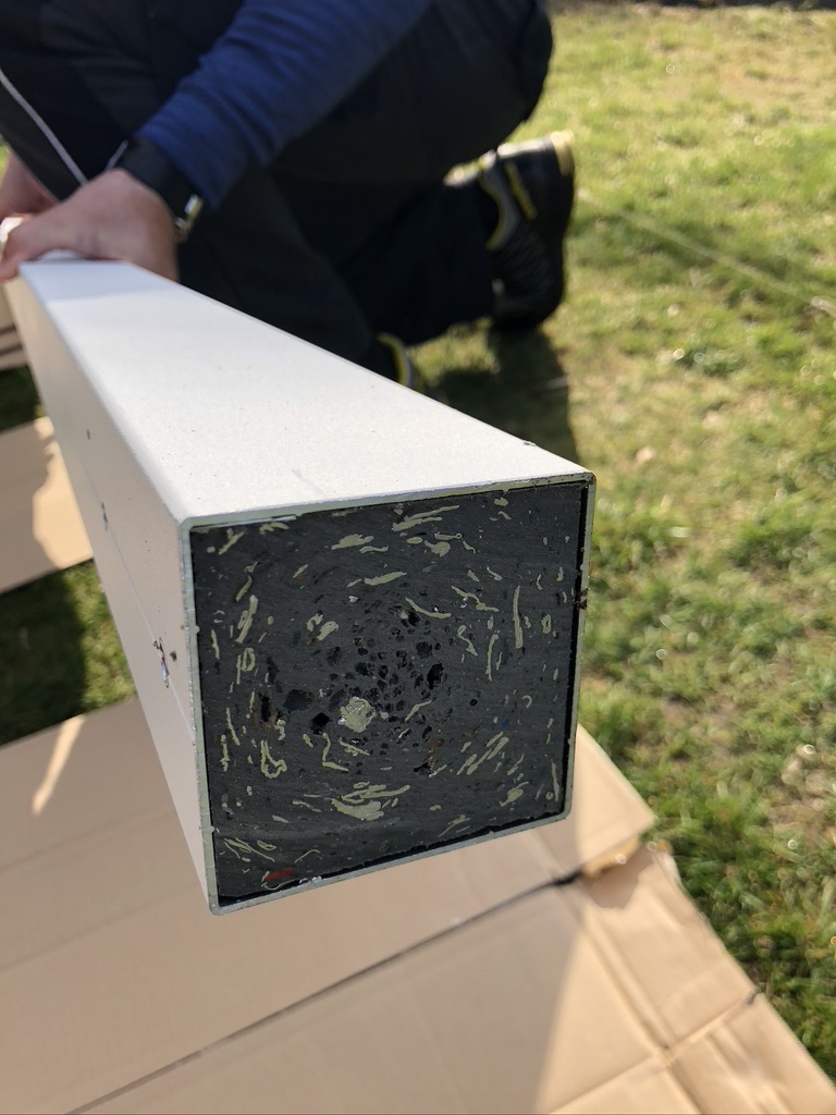 alle vier Kunststoffpfosten haben einen massiven Kunstoffkern, als zusätzliche Verstärkung. Damit ist der Pfosten wesentlich stabiler und ich kann überall in den Pfosten hineinbohren. Mit maximalem Halt. Auf diese Idee muss man erstmal kommen. Total nützlich und praktisch.