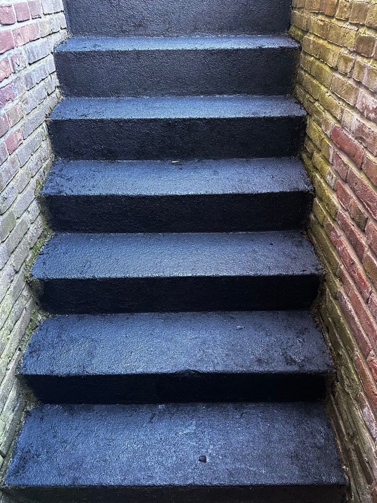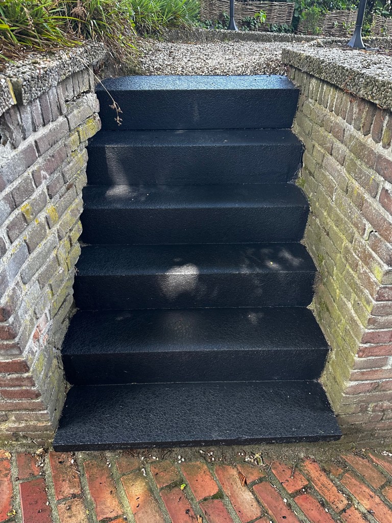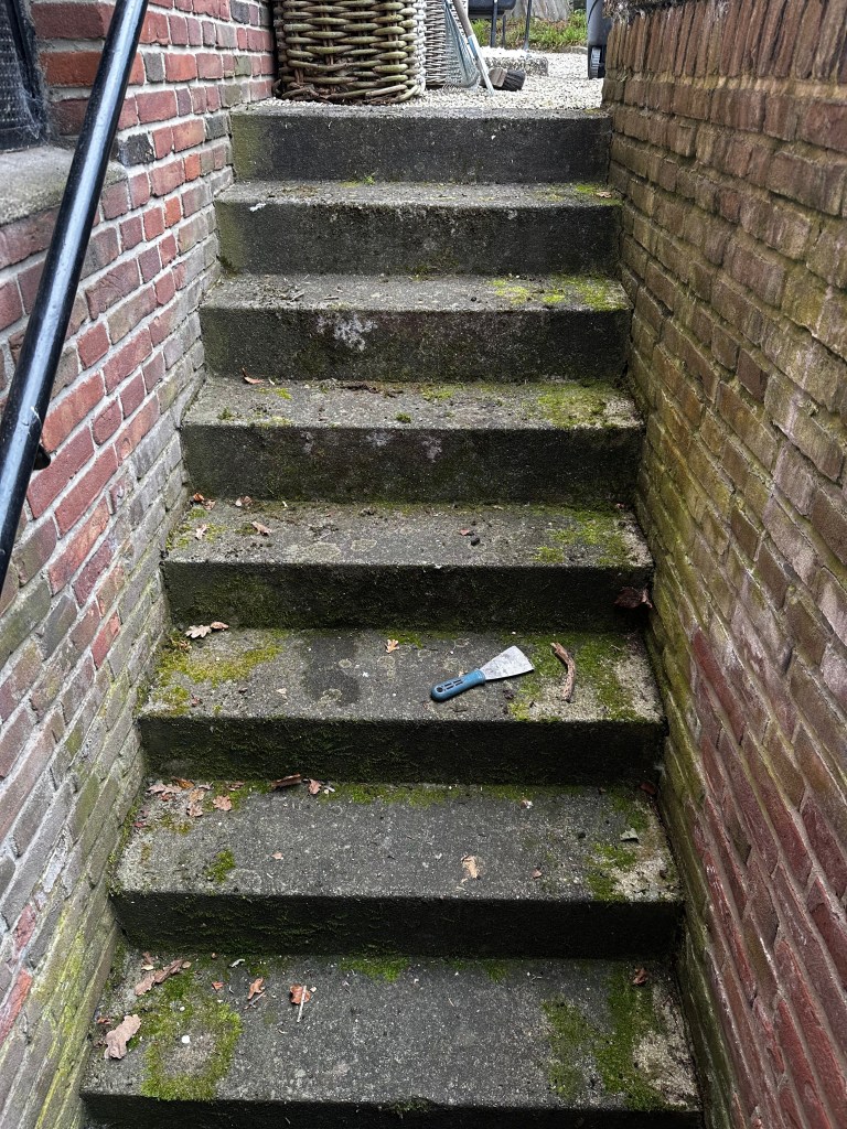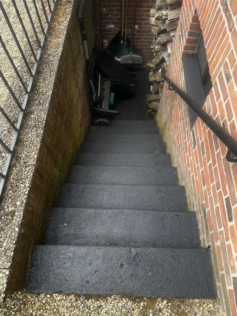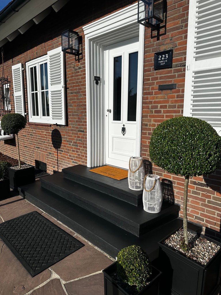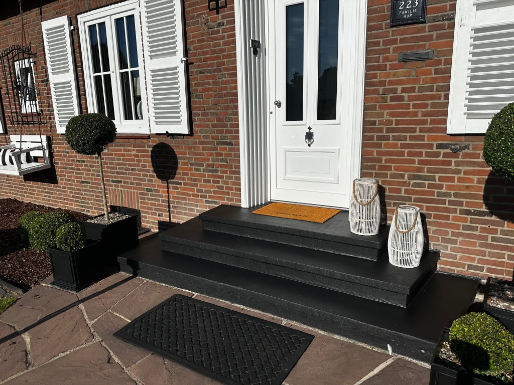 Auf Eingangstreppe, Einfahrtsweg und Kellertreppe hat das sofort einen sauberen, einheitlichen Look gebracht; es wirkt endlich alles aufgeräumt.
