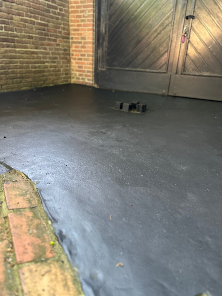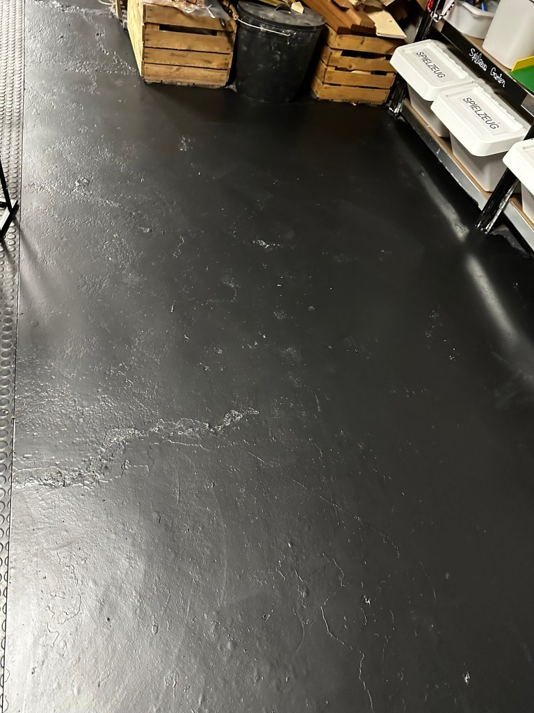 Mein Beton war teilweise „durstig“ und leicht sandig. Tiefgrund SB zieht tief in den Untergrund, bindet das Staubige und gleicht die Saugfähigkeit aus.
