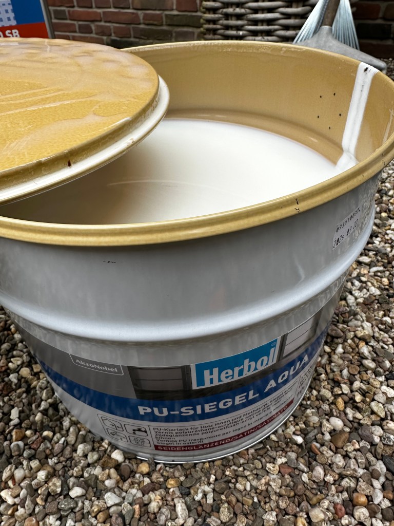 Zum Schluss kam das Herbol Siegel Aqua als transparente Versiegelung darüber. Das ist wie eine unsichtbare Schutzschicht: