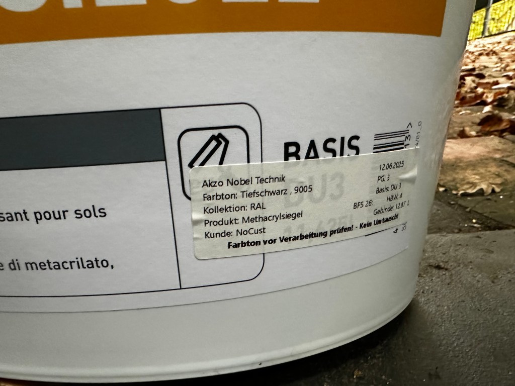- Methacryl-Siegel: Zwei Anstriche haben ein sattes, ruhiges Schwarz ergeben – ohne Wolken.