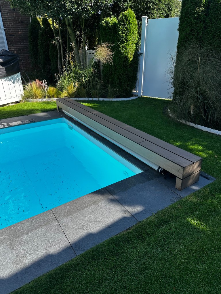 Vorher lag die Poolabdeckung sichtbar am Rand. Sie war da. Und sie störte.