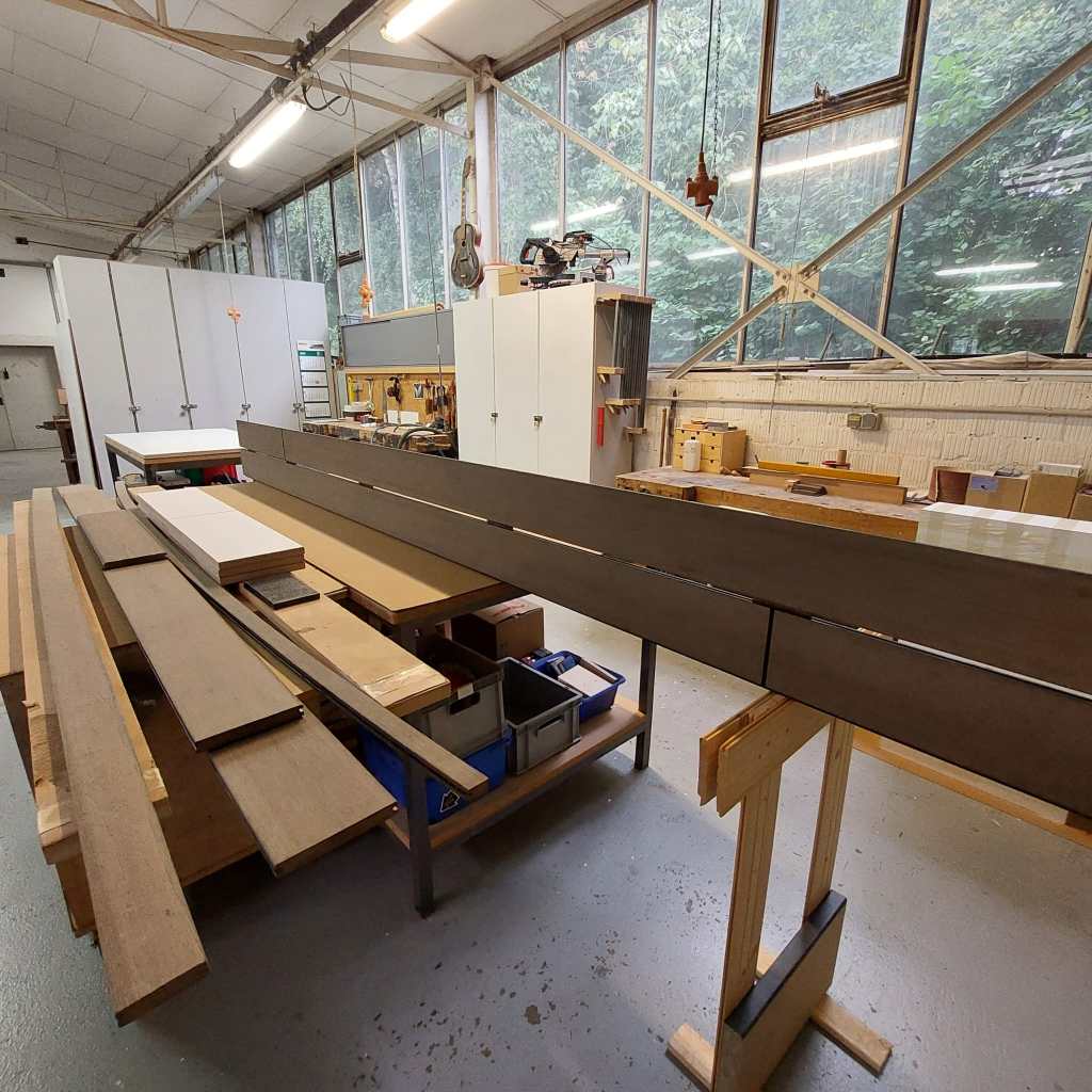 Die Werkstatt ist bestens ausgestattet: präzise Maschinen für Zuschnitt, Hobel- und Fräsarbeiten, moderne Technik für exakte Verbindungen und zugleich genügend Raum für Handarbeit, dort, wo Gefühl und Erfahrung wichtiger sind als reine Kraft. Hier wird nicht einfach produziert, hier wird gearbeitet – ruhig, sauber und mit Respekt vor dem Material.